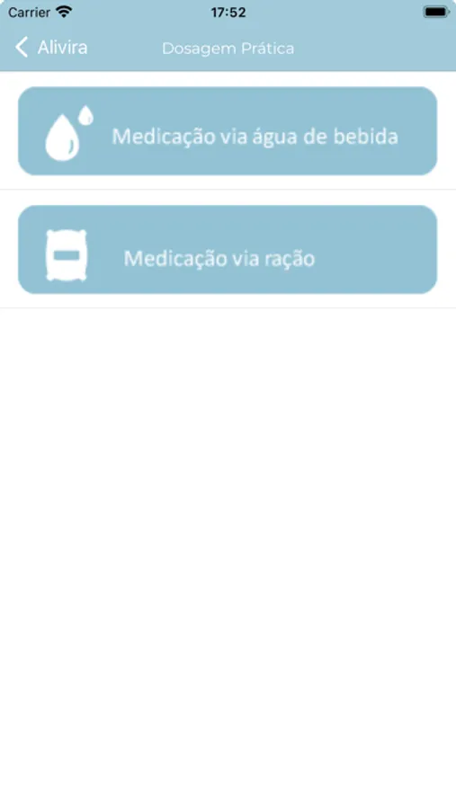 Calculadora de dosagem prática de produtos veterinários para uso via água e ração. Público alvo: Técnicos e Médicos Veterinários