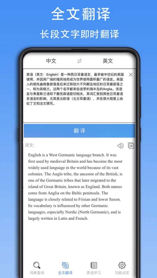 3. 能全文翻译。可以自动翻译很长的句子和整段文章