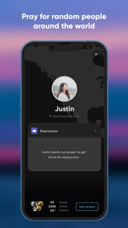 A request gets translated into major languages and awaits those who are ready to pray immediately. A special algorithm distributes believers into a virtual prayer room to assure that all current requests are answered. There are no boundaries and no limitations. All nationalities are united in one prayer. It would all be done at the same time, in a single prayer session, in its' own language or dialect. Prayers from all over the world will release an incredible power of goodness of God! Love, healing and deliverance of people will be manifested in the name of Jesus.