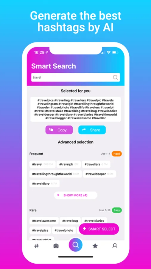 Hashy is one of the best AI apps to generate hashtags for any content you post on your social networks.