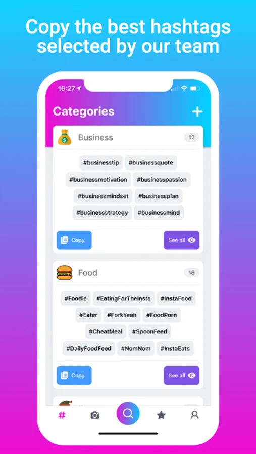 You can subscribe to Hashy Pro to eliminate ads, search and generate hashtags with a keyword, and create endless custom hashtag collections.