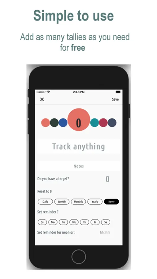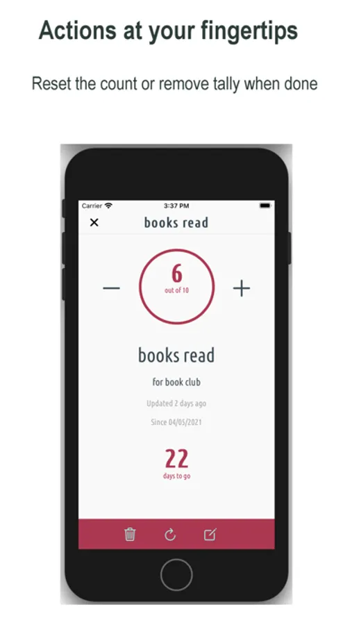 Each tally will tell you the current count and how long it's been since you last logged activity. And if you need to be reminded, you can simply do so from the app.