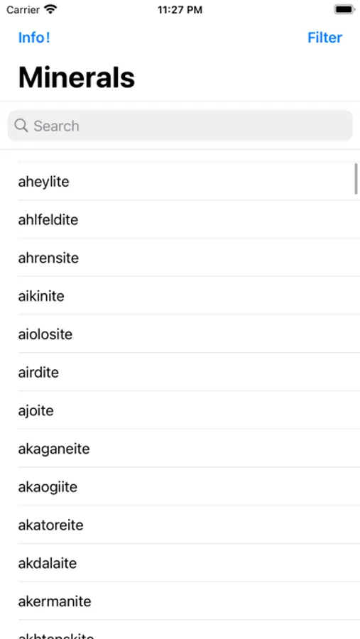 All the minerals in the world in one place. You can search and filter through our list of 5500+ minerals.Need help with mineral identification? this is the app for you, as all the minerals are listed with their physical, chemical and optical properties.