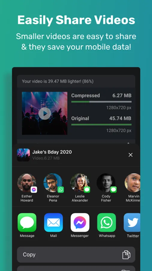 - Easily share compressed videos on Instagram, Facebook, YouTube, Viber, Discord, telegram...etc.