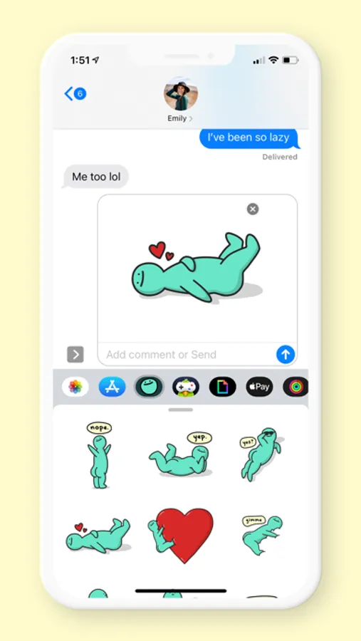 Stick them directly onto any message bubble, or send them as standalone images. Which one is your favorite? :)