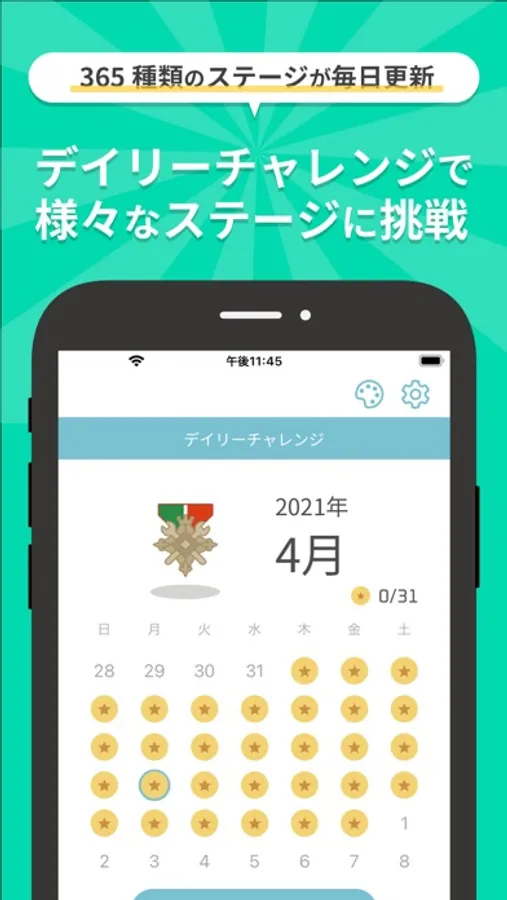 Play a new stage every day in the Daily Challenge Mode. Customize the game to your liking by changing the theme color.