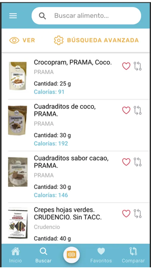 - Búsqueda avanzada: filtros de búsqueda para todos los nutrientes.
