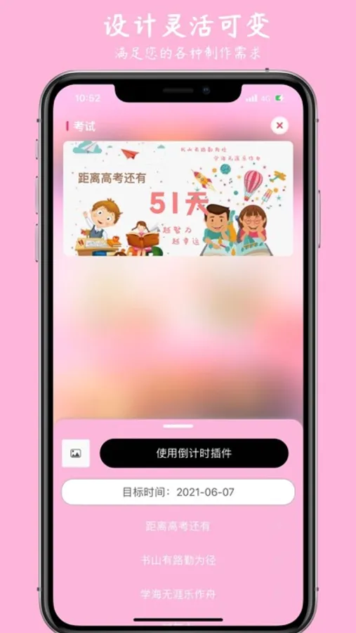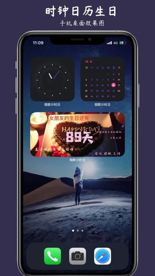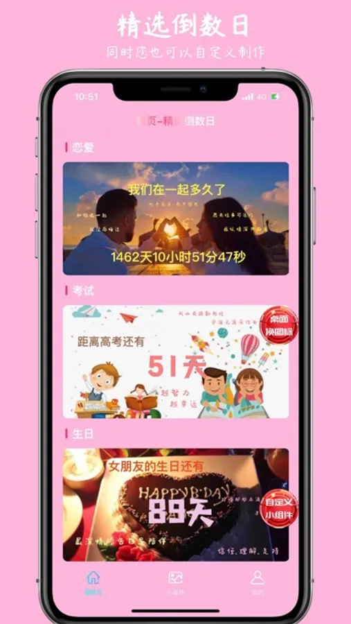 1、完全自定义的桌面小组件,可以自己随意拖拽,放置自己喜欢的文字,图片,还有倒计时等。