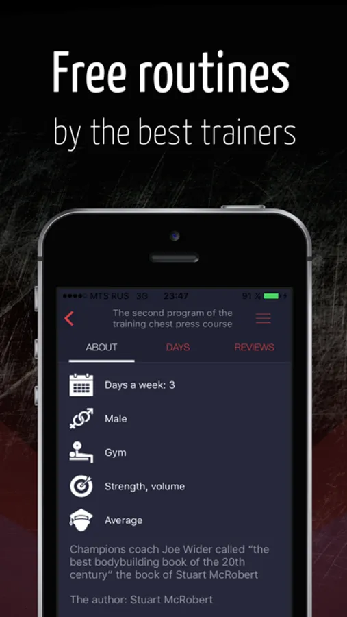 GymUp is a workout log and training routine collection. Perfect for fitness at gym and at home. Choose a training routine from well-known coaches and bodybuilders, or create your own. Note exercise results during the workout. View workout history and watch your body progress.