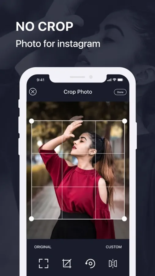 Amazing crop feature for making photo croup without crop manually. Auto crop feature available for making insta size.