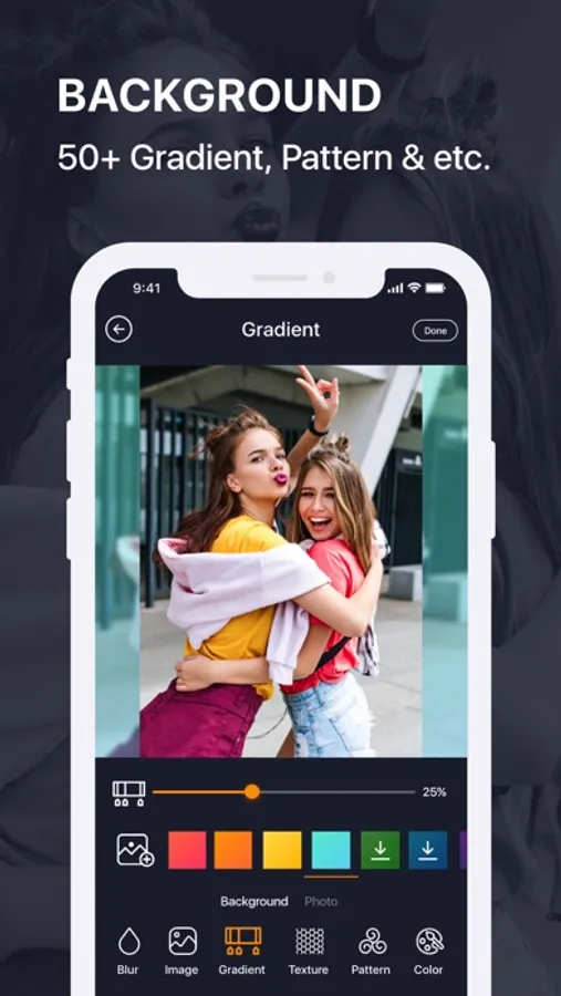 Huge collection of pattern, texture and gradient color backgrounds. 100+ Different background available for editing photo and making more fun.