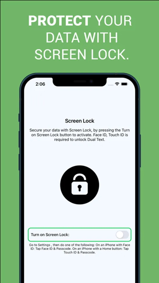 Your privacy matters! Activate our Screen Lock feature for top-notch data security. Unlock it with Touch ID, Face ID, or your phone's Passcode.