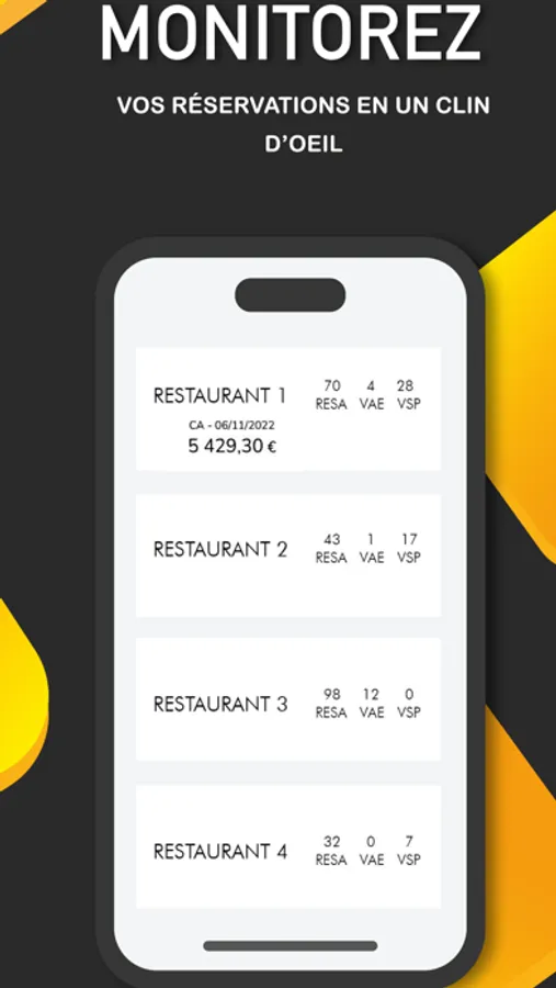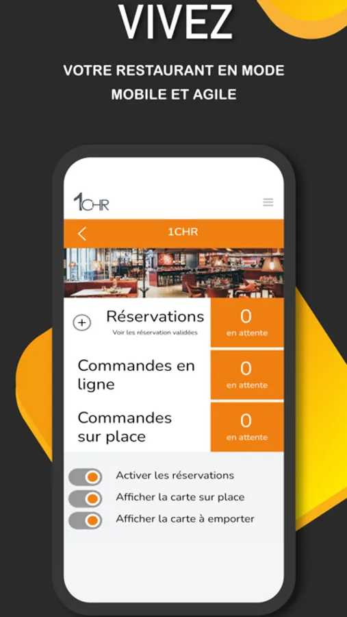 Cette application nécessite un abonnement mensuel auprès de 1CHR pour pouvoir être utilisée. Ensuite, le gérant d'un, ou plusieurs, restaurant(s) pourra gérer les commandes et les demandes de réservations réalisées en ligne.