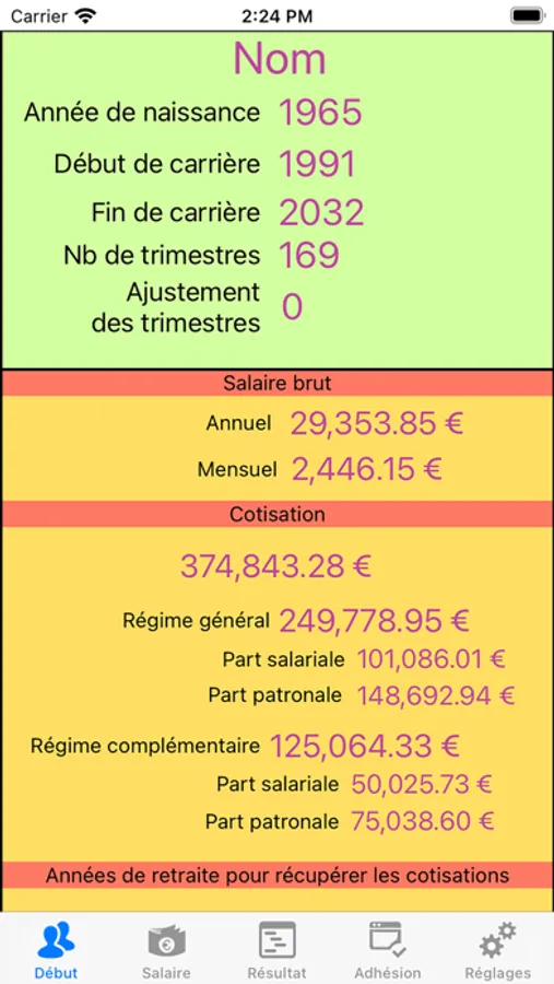 L'objectif de « SimuRetraite » est de donner une vision année par année sur tous les montants qui sont en jeu dans la simulation de la retraite et ne peuvent pas être pris comme une référence pour le calcul exact de votre retraite et des cotisations versées.