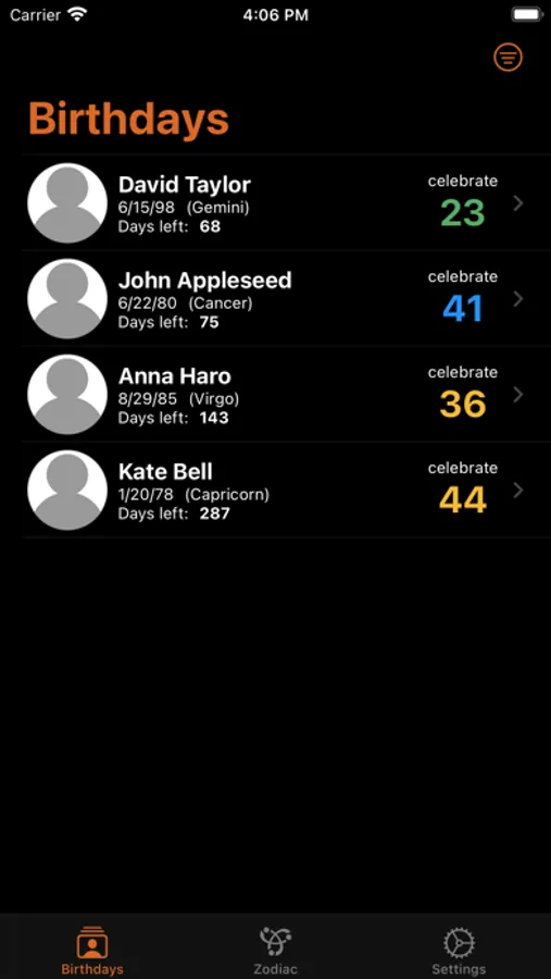 - see your friend’s age, birthday, contact picture and Zodiac sign