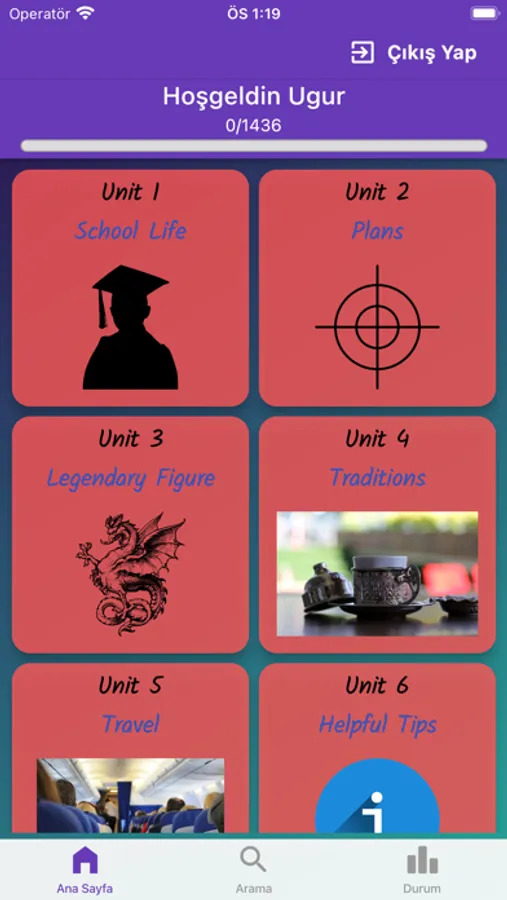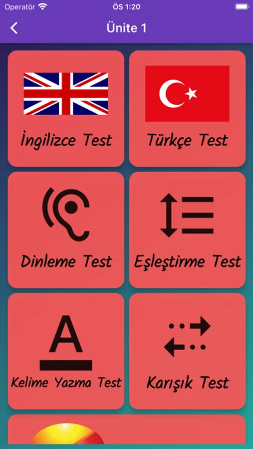 Herbir ünite için ayrı bir bölüm olmasının yanında tüm kelimeleri çalışabileceği genel bir test bölümü de bulunmaktadır.