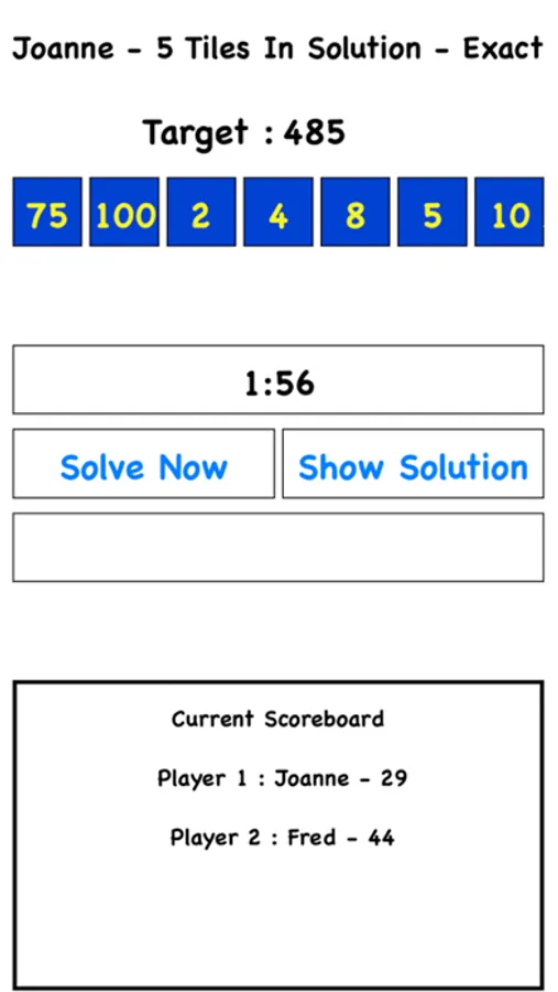 The aim of the game is to create a sum which equals a computer generated target using a selection of numbered tiles and the mathematical operators.