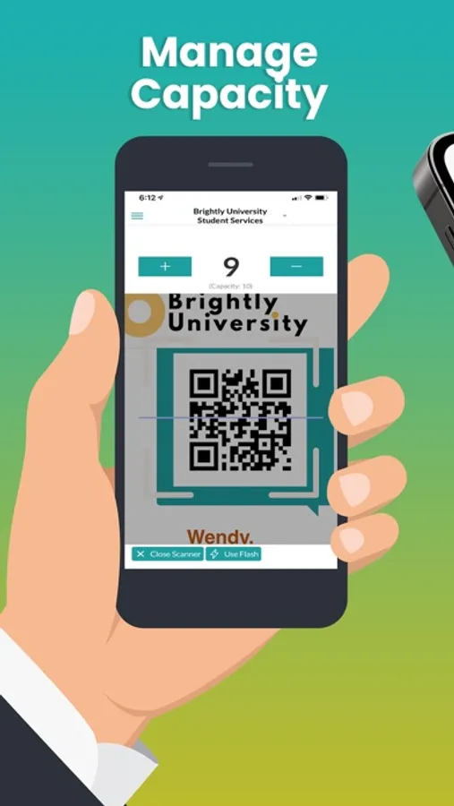 The App provides ability to use QR code scanning to admit customers in Event mode, PushNotifications regarding waiting customers and more.