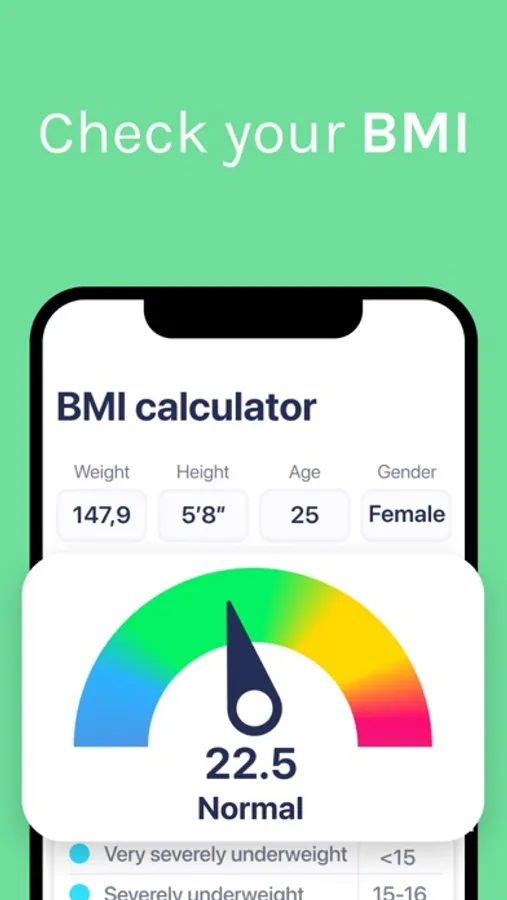 Calculate your BMI (Body Mass Index) and monitor your weight. See your progress and reach your goal!