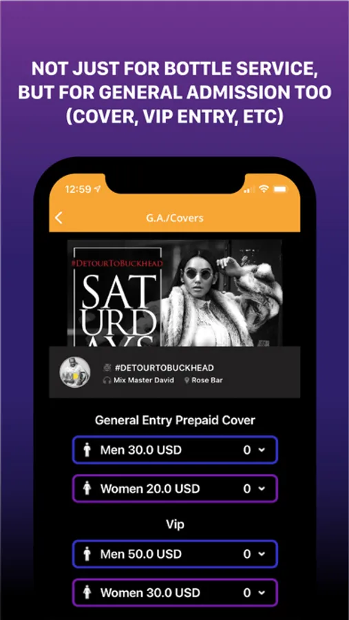 Effortlessly reserve and prepay for passes, tables, and drinks