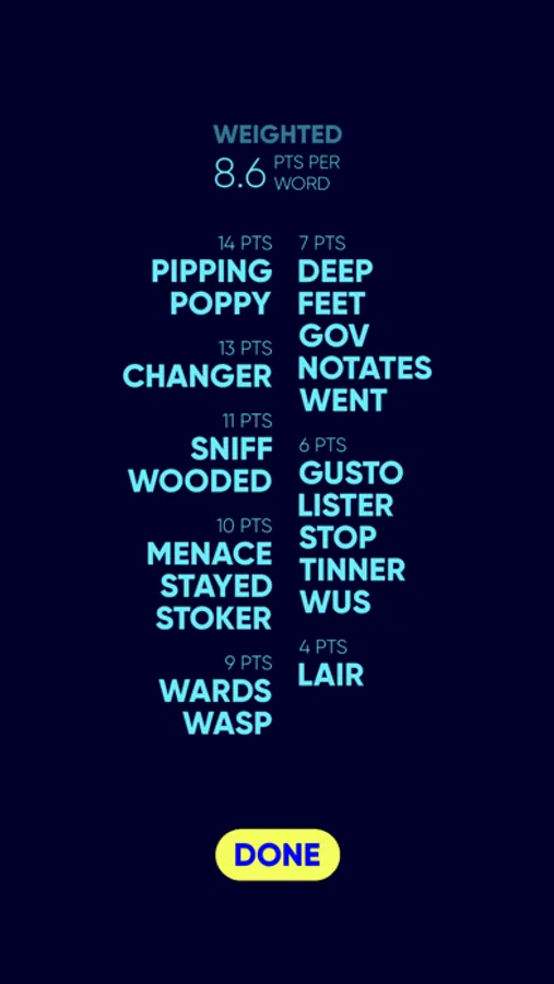 How long can you last? Spell out more and more words. Forget the crossword puzzle and play this instead. Get rewarded for using longer words. And experiment with different game modes.