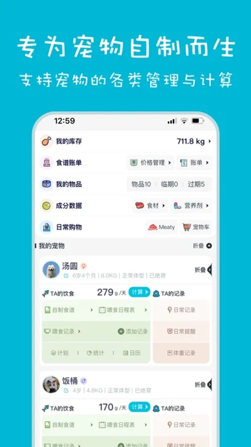 同时App还提供了养宠家庭日常管理功能: