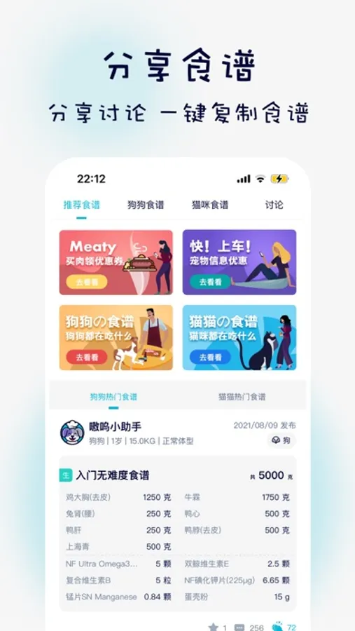 PS:加入嗷呜猫狗食谱用户社群,你还可以一起探讨、分析猫狗生骨肉熟自制遇到的日常问题哦!也可以加入宠物车群,了解第一手宠物商品优惠信息哦!