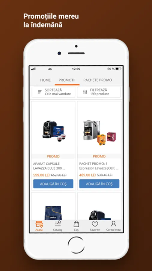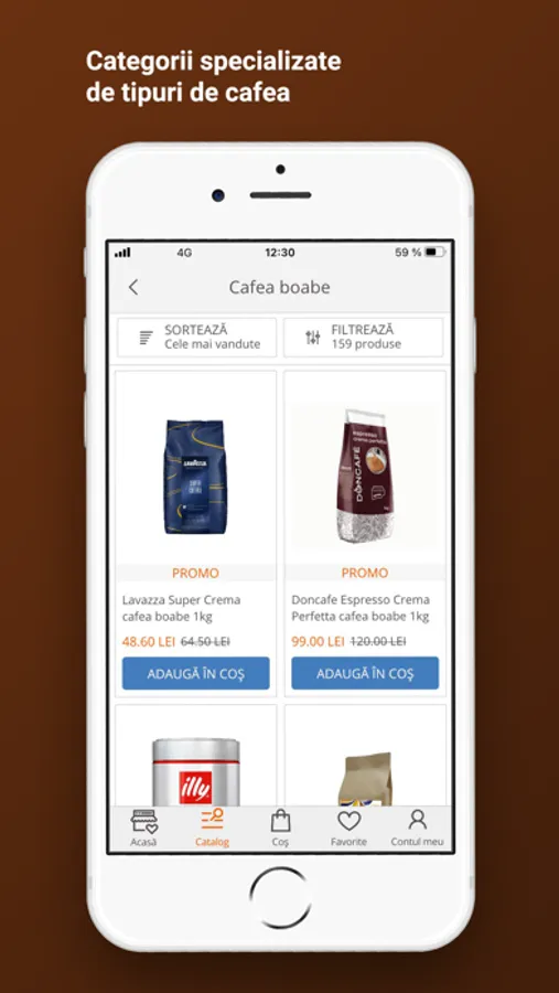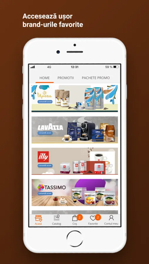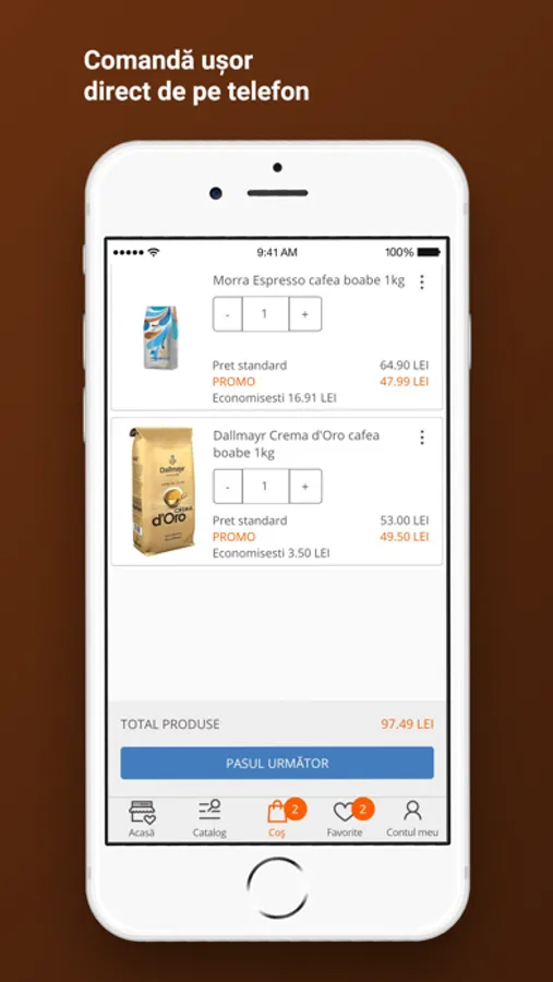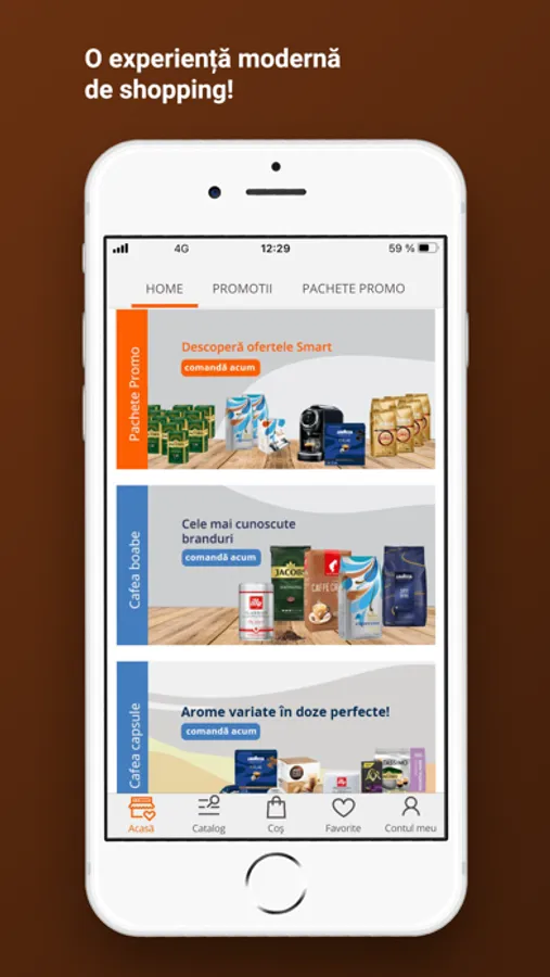 Comandă sortimentele preferate de cafea, oricand și oriunde, ușor și sigur, de pe telefon. Ai acces mereu la promoții, te bucuri de vouchere și oferte speciale!
