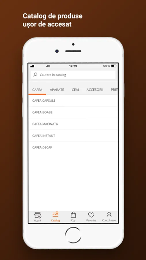 Aplicația Cafeo vă oferă o experiență modernă de shopping pe telefonul dumneavoastră IOS. Veți descoperi peste 300 de sortimente de cafea, espressoare și accesorii pentru cafea, de la cele mai cunoscute branduri din lume.