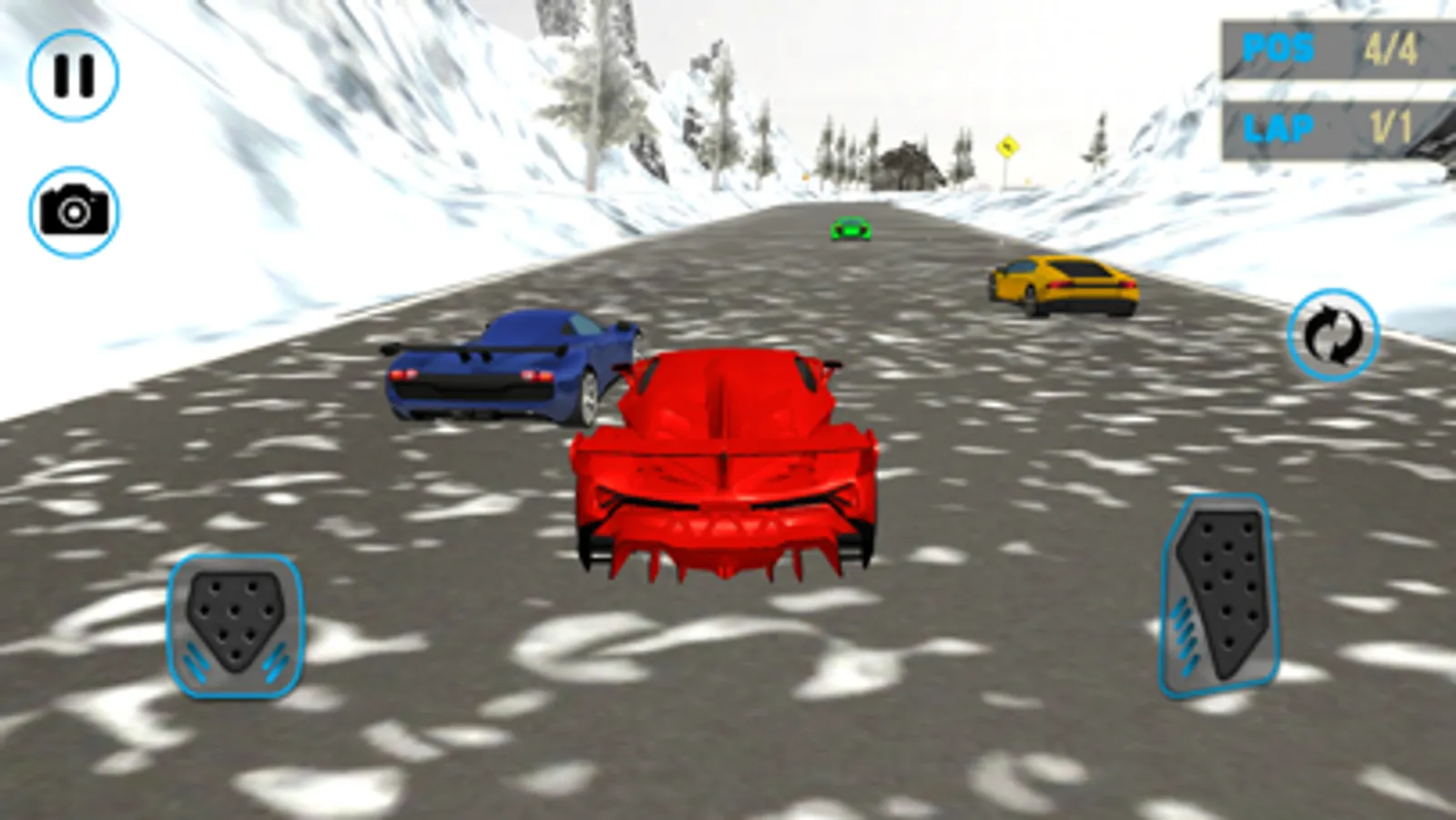 Complete the race on snowy roads without crashing your car with the Lamborghini Veneno.