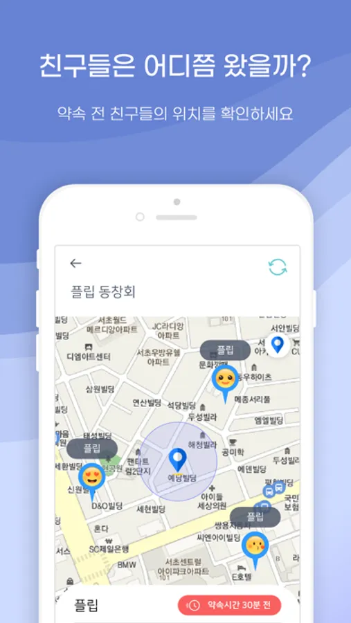 약속 시간이 가까워지면 친구들의 위치를 공유해요.