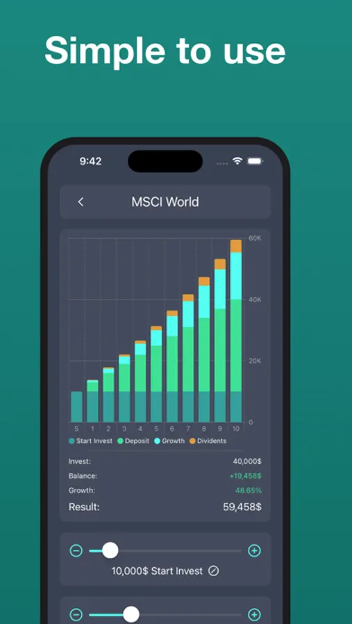 The most simple way to calculate the return from your ETF savings plan. Just fill in your parameters and see how your investment can perform over the next years.