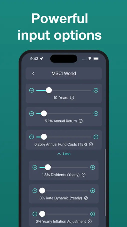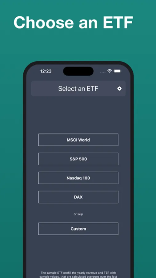 You can choose from a sample ETF to pre-fill the values for the yearly return and TER.