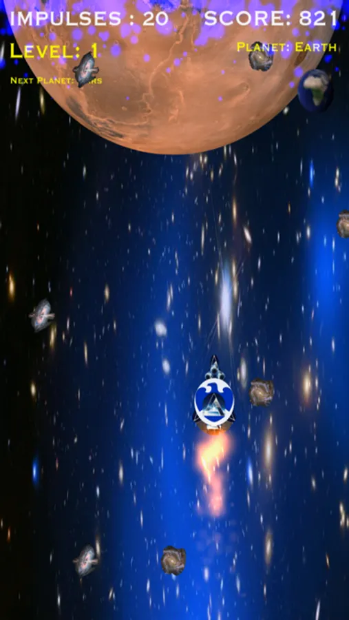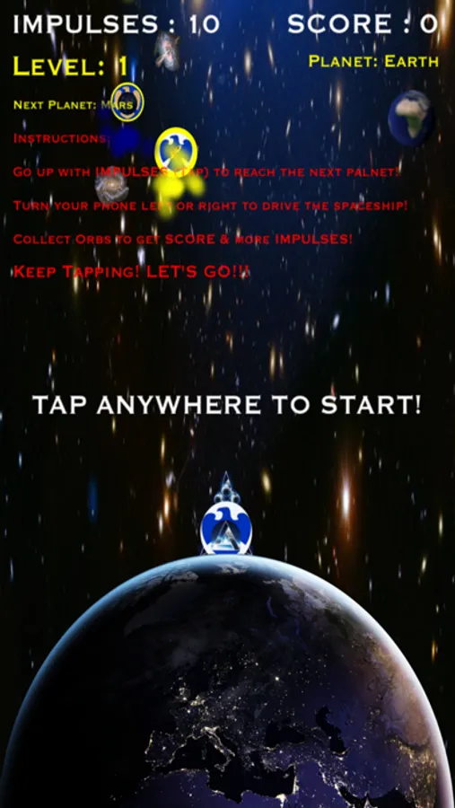 You need to tap the screen to use impulses what is start work the engine of your spaceship.Roll your phone left to direct the spaceship left and right to going to the right. for Marika :)
