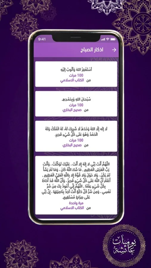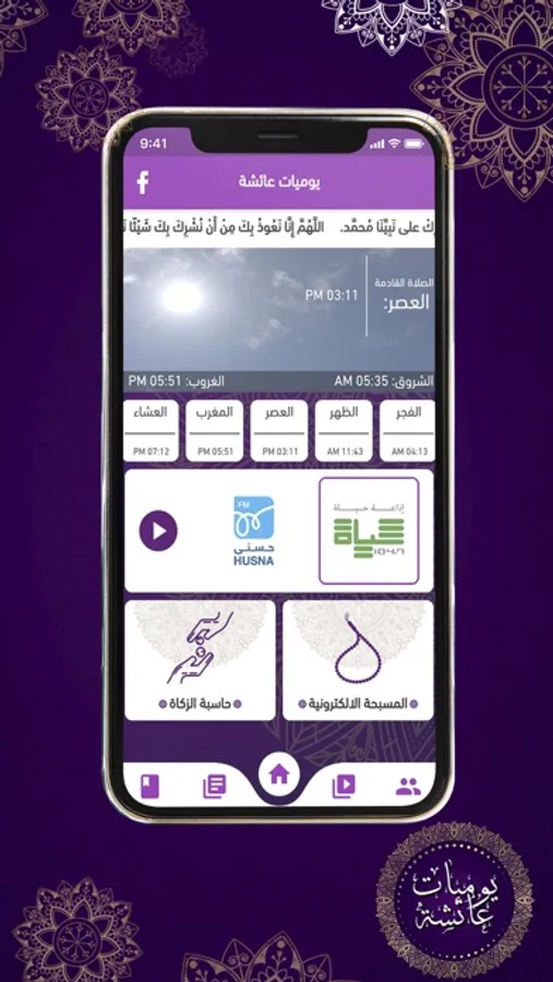 يحتوي التطبيق على العديد من الاقسام التي تهم جميع المسلمين ومنها: