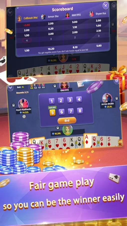 Callbreak provides a completely free private game, supports customized rounds, number of winners, suitable for family and friends gatherings.