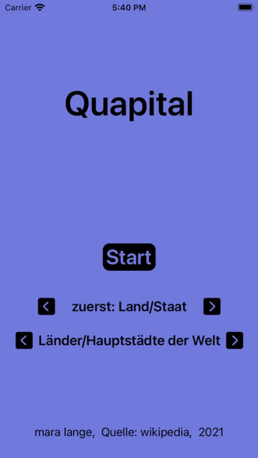 Quapital ist eine Quiz App, bei der du die Länder der Welt mit ihren Hauptstädten lernen kannst. Du kannst auch die Bundesländer von Deutschland und die Staaten von Amerika mit ihren Hauptstädten lernen!