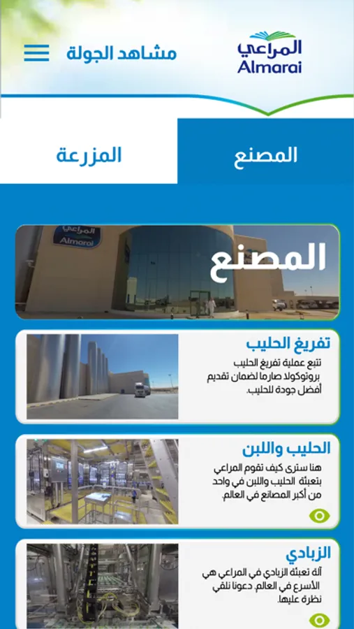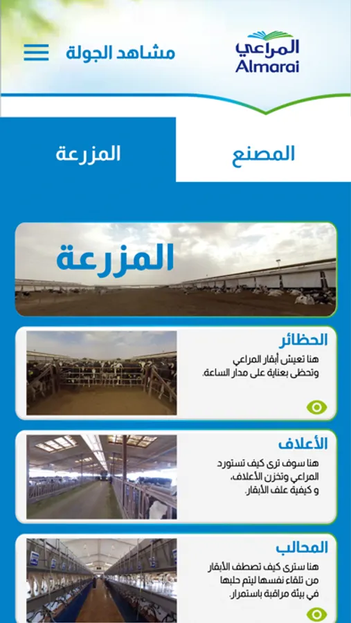 Through an immersive virtual tour, now you have the chance to enter the great world of Almarai farms and factories. Discover how Almarai takes good care of around 180,000 Holstein cows, how its milk is transformed into the various high-quality Almarai products. You will virtually touch our cows.. have fun!