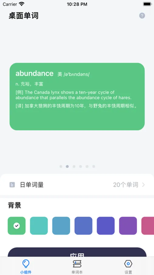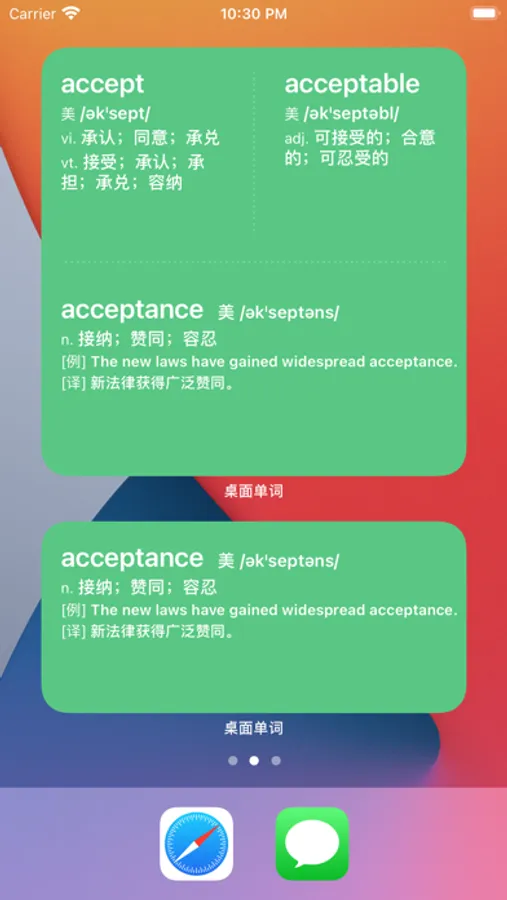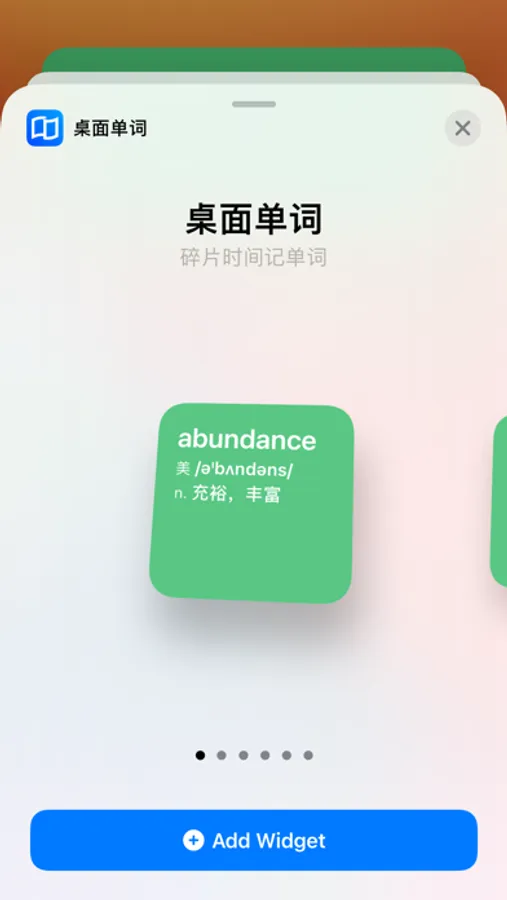 安装小组件在桌面,小组件会展示单词相关信息,单词会在一定的间隔时间自动刷新;