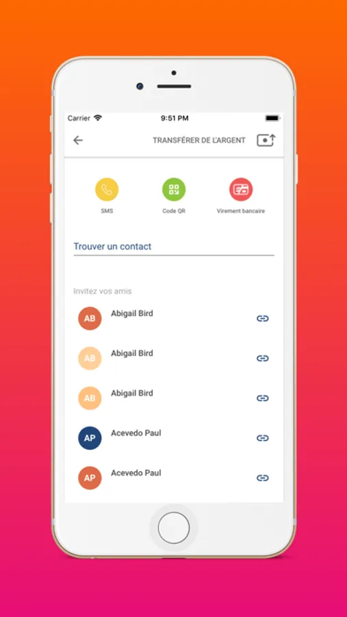 ● Transférez à votre tour de l’argent à vos contacts téléphoniques