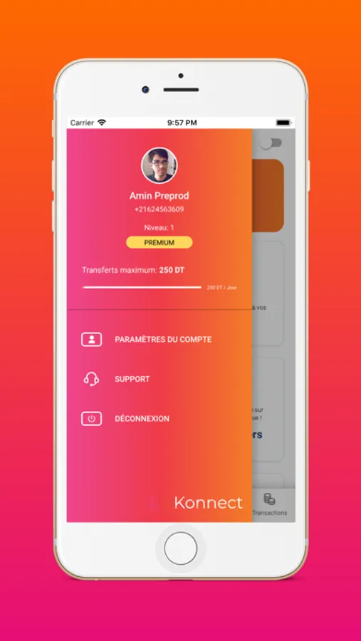 Konnect est l’application idéale pour envoyer et recevoir de l'argent d'une façon instantanée et sécurisée.