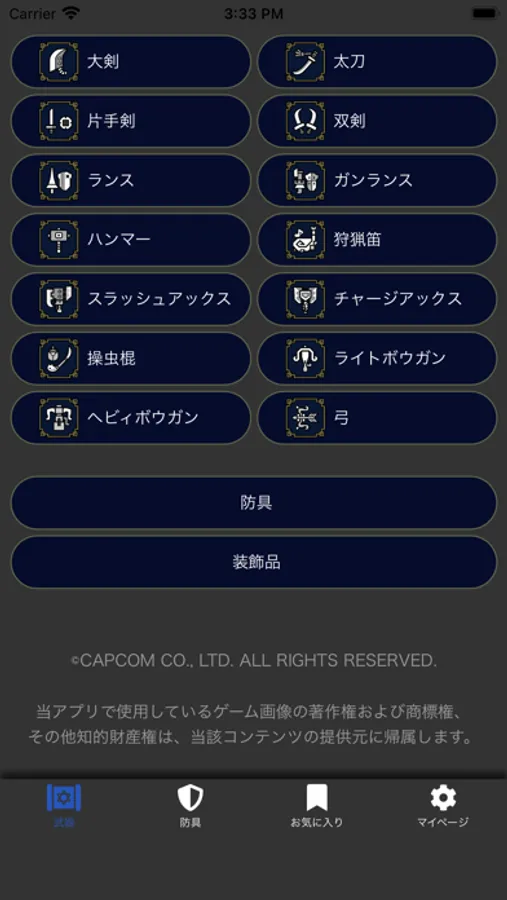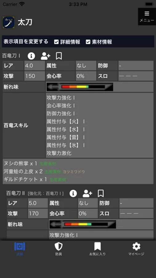 ゲームの武器・防具などの装備アイテム情報(素材・スキル)を検索するためのアプリです。