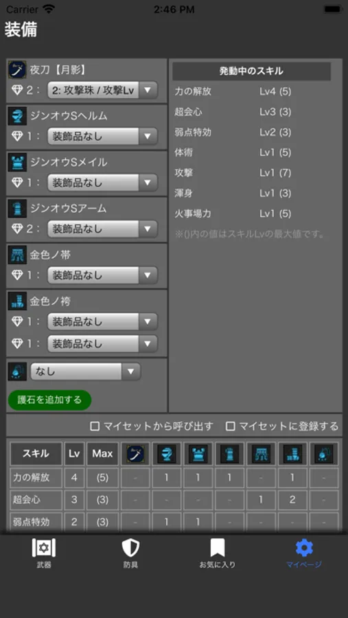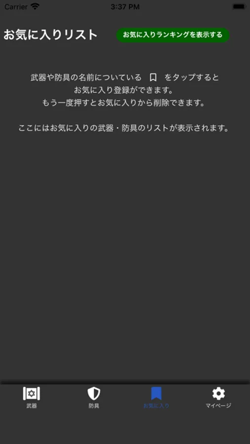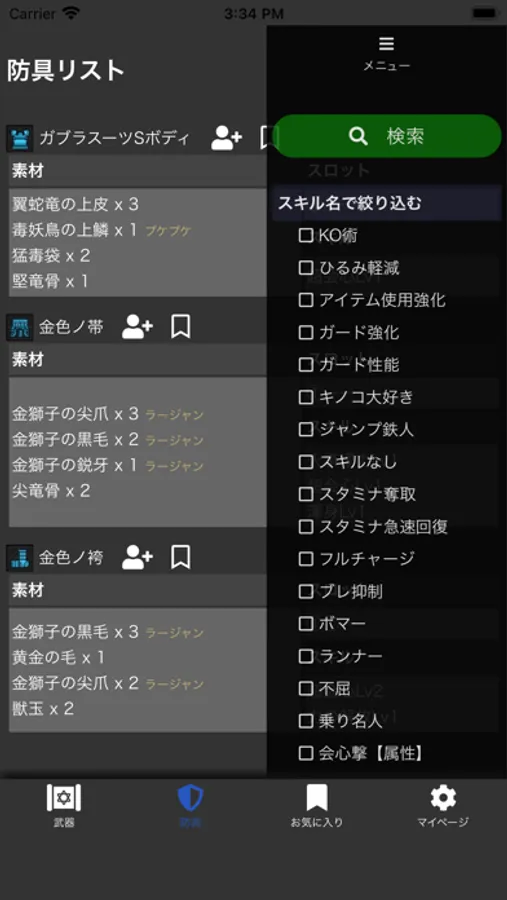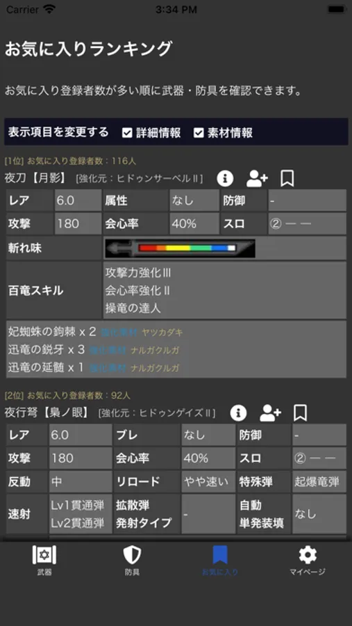 装備をお気に入りに登録すれば、作成したい装備の素材を簡単に確認できるようになります。