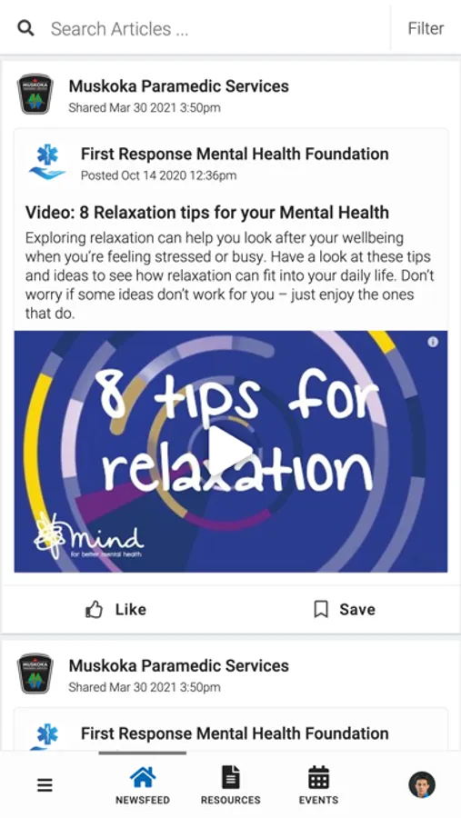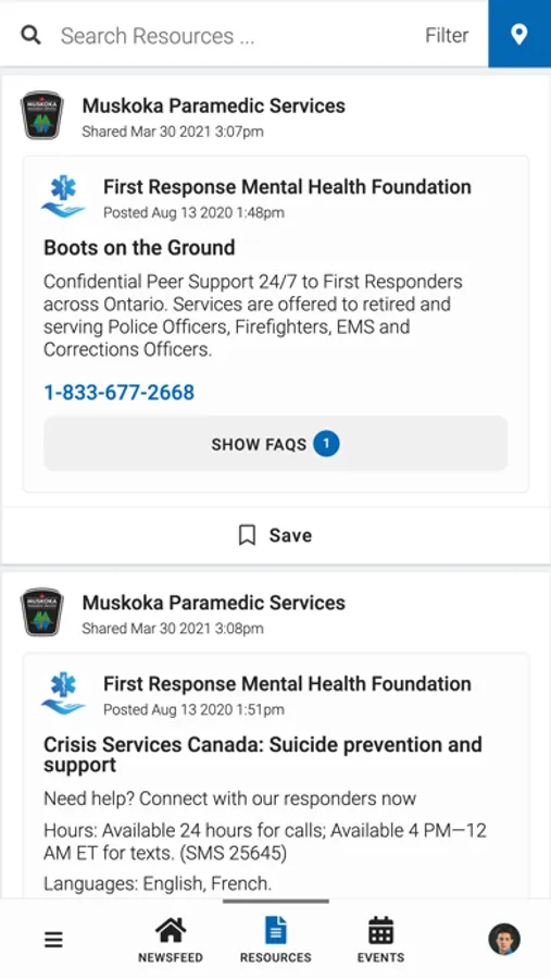 Muskoka PS PeerConnect connects the public to information about Muskoka Paramedic Services' programming and services. Users have access to newsfeed articles, resources, and events related to mental health, wellness, culture, and belonging.