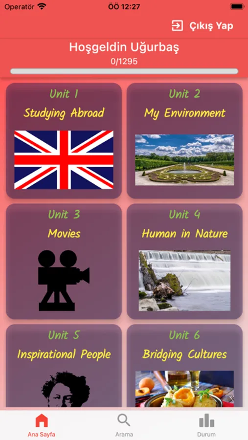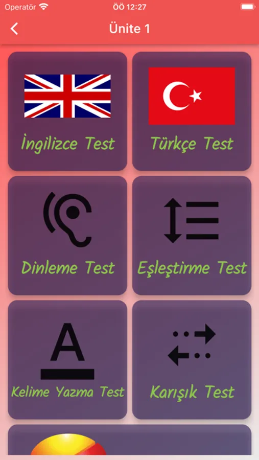 Herbir ünite için ayrı bir bölüm olmasının yanında tüm kelimeleri çalışabileceği genel bir test bölümü de bulunmaktadır.