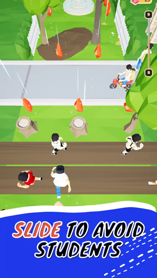 Challenge yourself and your friends to beat the clock to be the fastest student to reach school. Work your way up from Kevin to collect gems while rushing to school, and unlock the fastest student JianHao who is the star student in Titan Academy.