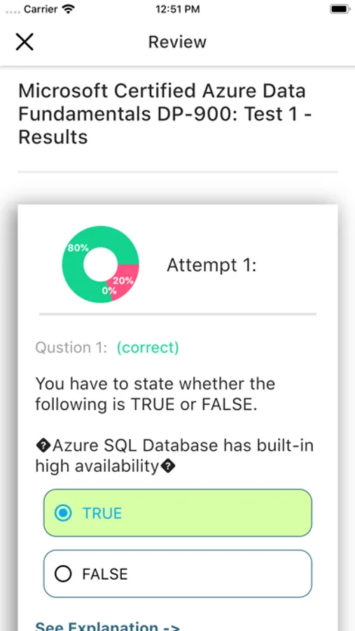This Azure Data Fundamentals DP-900 Practice Exams App covers EVERYTHING you need to know to pass the exam on your first try. Most of our users reported that our exams covered all questions that were on the actual test. We highly recommend reading the explanations provided after each practice test, not only for the correct choices, but also for the incorrect ones. This will help improve your understanding and increase your score dramatically. By paying attention to these and repeating all the tests until you get 90% or more on each one, you should be able to ace the real exam with confidence.