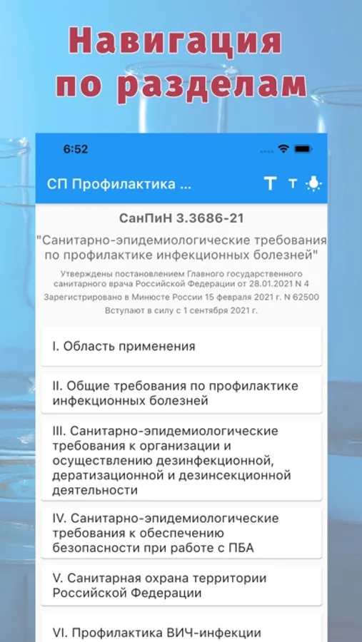 Удобная навигация и поиск по СанПин 3.3686-21 "Профилактика инфекционных болезней".