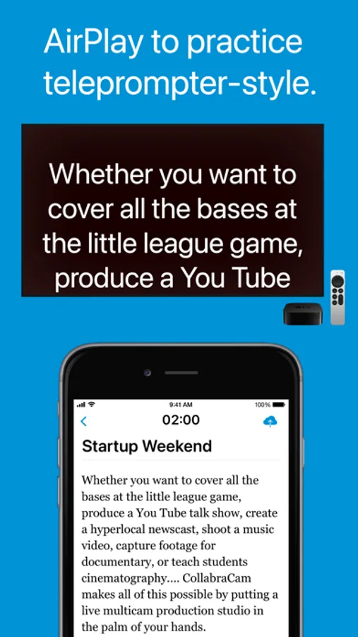 Once you've polished the perfect pitch and you're bursting with confidence, take it to the next level, rotate to landscape and it's just you against the clock. When the countdown ends the crowd goes wild! As an added bonus you can AirPlay to an Apple TV to practice your pitch teleprompter-style or to practice with the countdown!