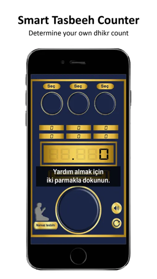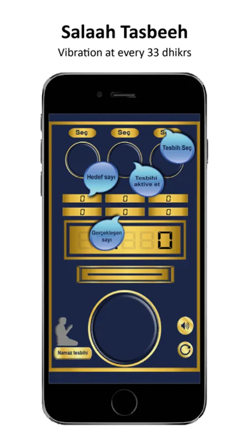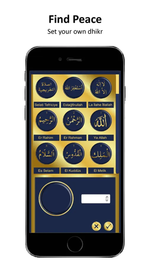 Through vibration of the zikr application, you can cotinue your zikr without looking at the screen.